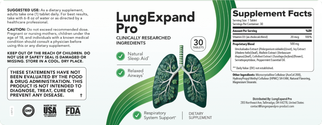LungExpand Pro is a natural dietary supplement specifically designed to improve lung health and breathing quality. It blends plant extracts and nutrients with anti-inflammatory, expectorant, and immune-supporting properties that directly target respiratory symptoms and help enhance lung function.